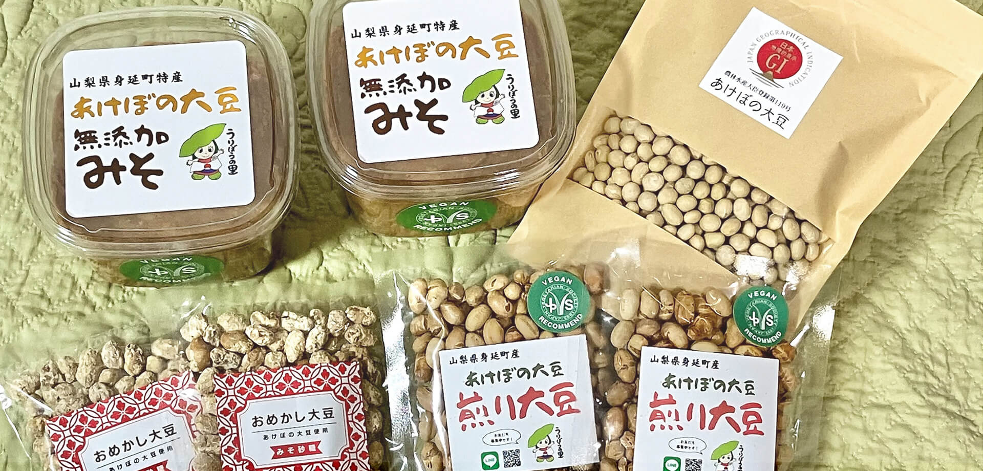 うりぼうの里の商品は全て、うりぼうの里で採れたあけぼの大豆を使用しています。
